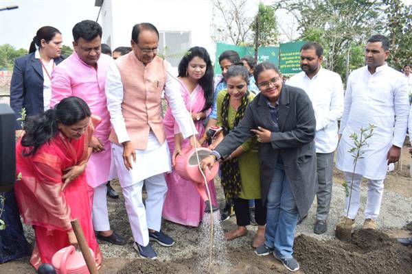 मुख्यमंत्री चौहान ने आँवला, गुलमोहर और अमरूद के पौधे रोपे