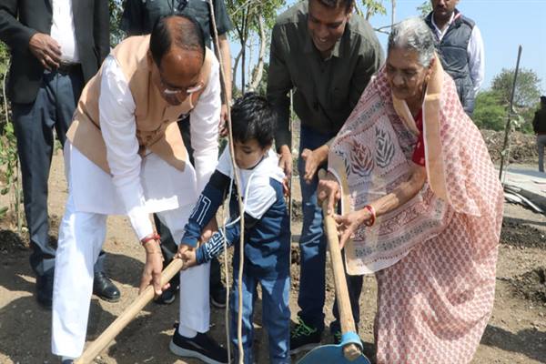 मुख्यमंत्री चौहान के साथ 80 वर्षीय सेवानिवृत्त शिक्षिका ने पौध-रोपण किया