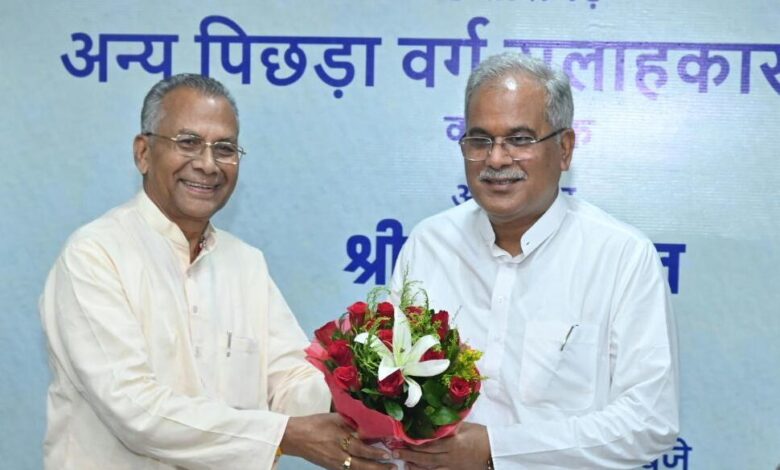 मुख्यमंत्री श्री भूपेश बघेल की अध्यक्षता में छत्तीसगढ़ अन्य पिछड़ा वर्ग सलाहकार परिषद की पहली बैठक मुख्यमंत्री निवास कार्यालय में आयोजित की गई। मुख्यमंत्री ने सलाहकार परिषद् की बैठक को सम्बोधित करते हुए कहा कि अन्य पिछड़ा वर्ग के हितों की सुरक्षा, कल्याण एवं सर्वांगीण विकास के लिए राज्य शासन को परामर्श देने हेतु सलाहकार परिषद का गठन किया गया है। उन्होंने कहा कि अन्य पिछड़ा वर्ग में शामिल सभी वर्गों को शासन द्वारा संचालित योजनाओं का अधिक से अधिक लाभ उठाना चाहिए। विशेषकर समाज के शैक्षणिक, सामाजिक, आर्थिक विकास, व्यवसाय, रोजगार पर ध्यान देना चाहिए।