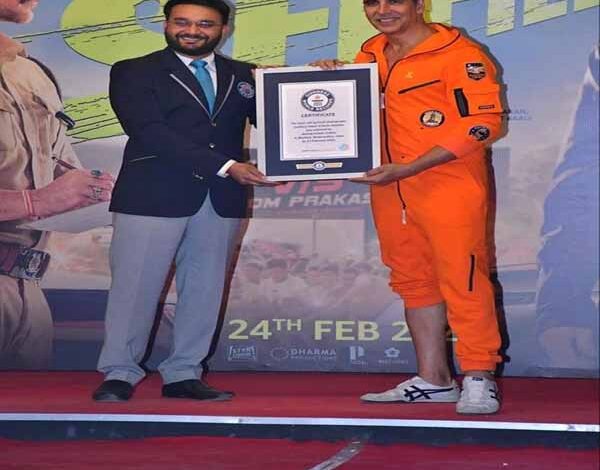 बॉलीवुड के खिलाड़ी कुमार अक्षय कुमार ने तीन मिनट में ‘184 सेल्फी’ लेकर गिनीज वर्ल्ड रिकॉर्ड में अपना नाम दर्ज करा दिया है। अक्षय कुमार इन दिनों अपनी आने वाली फिल्म ‘सेल्फी’ को लेकर चर्चा में हैं। अक्षय कुमार फिल्म ‘सेल्फी’ के प्रमोशन के लिए मुंबई की सड़कों पर उतर आए। फिल्म प्रमोशन के दौरान अक्षय कुमार से मिलने और उनके साथ सेल्फी खिचवाने के लिए काफी संख्या में फैंस वहां पर जमा हो गए थे। इस दौरान अक्षय ने तीन मिनट में अपने फैंस के साथ ढ़ेर सारी सेल्फी खिचवाई। 3 मिनट में 184 सेल्फी खीचकर अक्षय ने अपना नाम ‘गिनीज वर्ल्ड आॅफ रिकॉर्ड’ में नाम दर्ज कराया है। राज मेहता के निर्देशन में बनी फिल्म सेल्फी वर्ष 2019 में प्रदर्शित मलयालम भाषा की कॉमेडी-ड्रामा ‘ड्राइविंग लाइसेंस’ की रीमेक है। अक्षय कुमार इस फिल्म में पृथ्वीराज सुकुमारन वाला किरदार निभा रहे हैं, जबकि इमरान हाशमी विजय वेंजरममूदु वाले किरदार में दिखाई देंगे। इस फिल्म की कहानी एक मोटर व्हीकल इंस्पेक्टर के इर्द-गिर्द घूमती है, जो एक सुपरस्टार का फैन है। वह एक मुश्किल परिस्थिति से उसे निकालने का फैसला लेता है। लेकिन शर्त रख देता है कि वह उससे पर्सनली मिलना चाहता है। दोनों की मुलाकात होती है और मीटिंग में दोनों के बीच ऐसा कुछ होता है कि दोनों आपस में भिड़ जाते हैं। उनकी लड़ाई का असर उनकी प्रोफेशनल लाइफ पर भी पड़ता है। फिल्म सेल्फी 24 फरवरी, 2023 को सिनेमाघरों में रिलीज होगी।