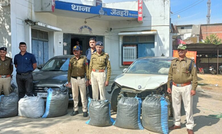 थाना जैतहरी के द्वारा अवैध मादक पदार्थ गांजा का परिवहन करते स्वीफ्ट एवं स्कोडा कार सहित 188 किग्रा. अवैध गांजा जप्त, दोनांे वाहनों अवैध गांजे की सहित कुल कीमत 53.6 लाख रु.।