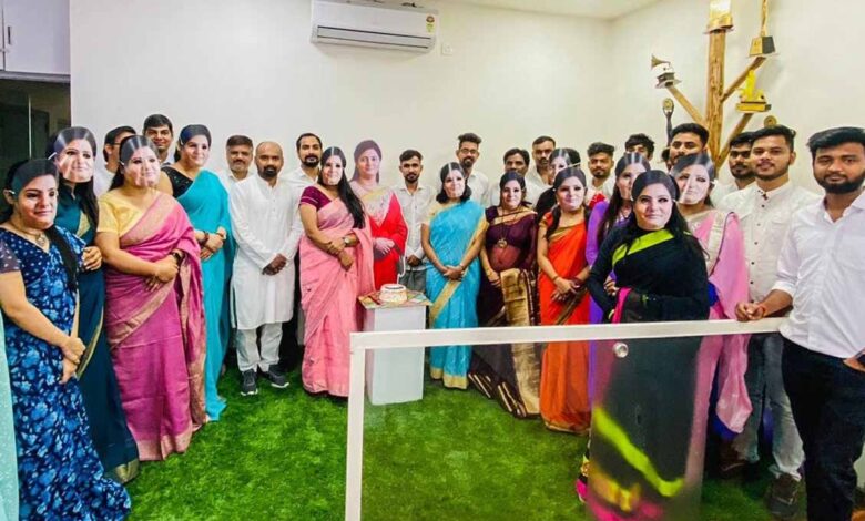 – इंदौर कार्यालय में अनुप्रिया का फेस मास्क पहनकर, साड़ी एवं कुर्ते पैजामे में पहुंचे युवा मंच कार्यकर्ता