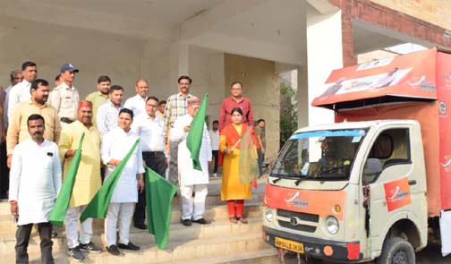 सरकार के तीन वर्ष की उपलंब्धियो के विकास रथ को विधायक सिंगरौली ने हरी झण्डी दिखा कर किया रवाना
