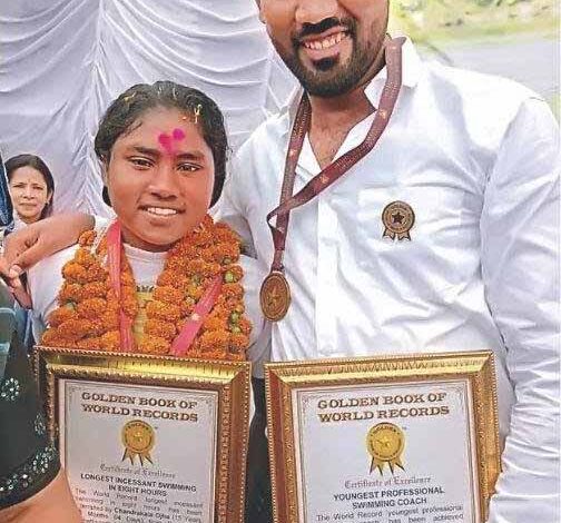 चंद्रकला ने लगातार आठ घंटे तैर कर गोल्डन बुक आफ विश्व रिकार्ड में दर्ज की नाम