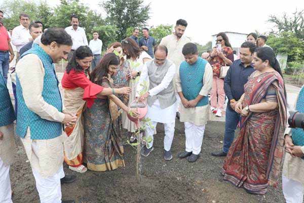 मुख्यमंत्री चौहान ने लगाए नीम, बादाम और जामुन के पौधे
