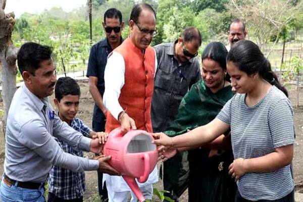 मुख्यमंत्री चौहान ने पीपल, आम और कचनार के पौधे लगाए