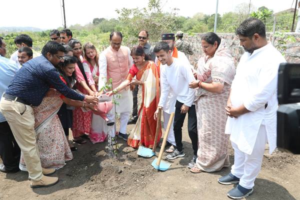 मुख्यमंत्री चौहान ने पीपल, नीम और कचनार के पौधे रोपे