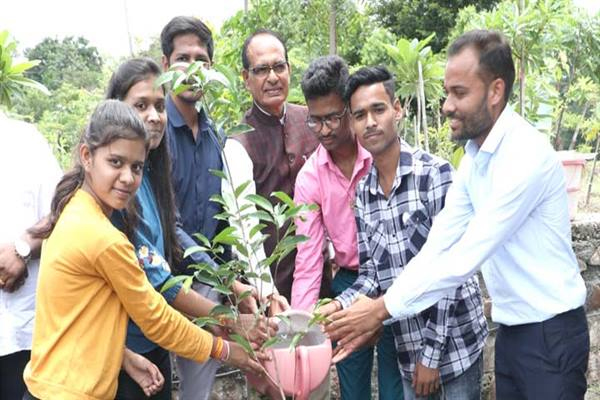 मुख्यमंत्री चौहान ने बरगद, करंज, जामुन, अमरूद, पीपल और मौलके पौधे रोपे