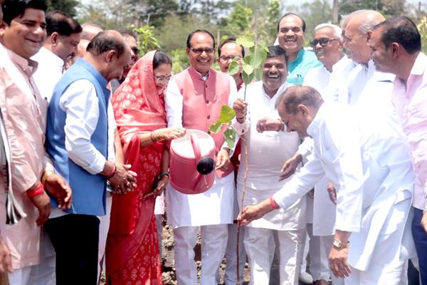 मुख्यमंत्री चौहान ने स्मार्ट सिटी उद्यान में बरगद, आम, जामुन और पीपल के पौधे रोपे