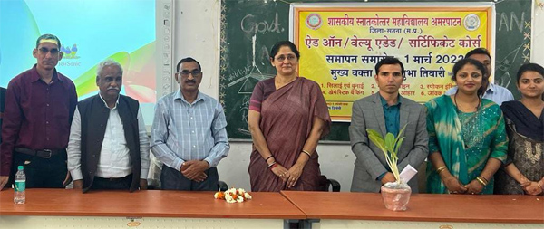 आइक्यूएसी संयोजक डॉ.एस.एन मिश्र ने कोर्स की उपयोगिता के बारे में बताया उन्होंने कहा कि आत्मविश्वास बढ़ाना और कौशल विकास करने के उद्देश्य से यह 6 नए पाठ्यक्रम शुरू किए गए थे। महाविद्यालय के प्राचार्य डॉ एसपी सिंह ने अध्यक्षीय भाषण दिया तथा विद्यार्थियों को कोर्स पूर्ण करने पर बधाई दी। समापन कार्यक्रम में छह पाठ्यक्रमों के कोऑर्डिनेटर अल्का सिंह, डॉ त्रिपुरान्ताक शर्मा, प्रो. अनुष्का सिंह, डॉ रश्मि पटेल, अरूणा मिश्रा एवं महाविद्यालय के प्राध्यापक, छात्र-छात्राएं उपस्थित रहे।