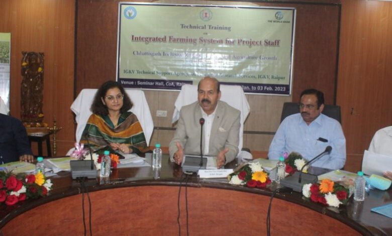 इंदिरा गांधी कृषि विश्वविद्यालय रायपुर में आज यहां छत्तीसगढ़ शासन द्वारा क्रियान्वित चिराग परियोजना के अन्तर्गत कार्यरत मैदानी कार्यकतार्ओं एवं परियोजना अमले को समन्वित कृषि प्रणाली के बारे में विस्तृत जानकारी देने के लिए चार दिवसीय तकनीकी प्रशिक्षण कार्यक्रम प्रारंभ किया गया। प्रशिक्षण कार्यक्रम का शुभारंभ इंदिरा गांधी कृषि विश्वविद्यालय के कुलपति डॉ. गिरीश चंदेल ने किया। समारोह की अध्यक्षता चिराग परियोजना की संचालक डॉ. चंदन संजय त्रिपाठी ने की। इस चार दिवसीय प्रशिक्षण कार्यक्रम के अंतर्गत चिराग परियोजना के मैदानी कार्यकतार्ओं को कृषि के साथ-साथ पशुपालन, डेयरी, मछली पालन, कुक्कुट पालन, मशरूम उत्पादन तथा अन्य आयमूलक गतिविधियों के समन्वित क्रियान्वयन के संबंध में विषय विशेषज्ञों द्वारा गहन प्रशिक्षण दिया जाएगा। उल्लेखनीय है कि चिराग परियोजना छत्तीसगढ़ राज्य के आठ जिलों झ्र कांकेर, कोण्डागांव, नारायणपुर, बस्तर, दंतेवाड़ा, बीजापुर, सुकमा और मुंगेली के 14 विकासखण्डों में संचालित है। इंदिरा गांधी कृषि विश्वविद्यालय चिराग परियोजना में तकनीकी मार्गदर्शन एवं सहयोग प्रदान कर रहा है।