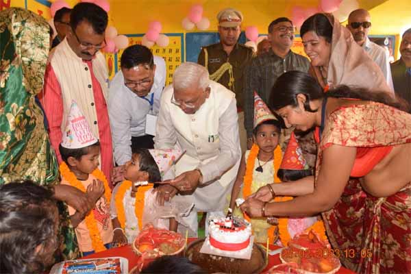 महामहिम राज्यपाल ने किया आंगनबाड़ी केंद्र चरगोड़ा का निरीक्षण बच्चों का मना बर्थ-डे, कटा केक