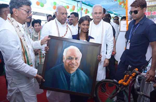 10वीं की छात्रा शैल ने राज्यसभा में नेताप्रतिपक्ष श्री मल्लिकार्जुन खरगे जी की बहुत ही खूबसूरत तस्वीर बनाई थीं। कार्यक्रम में शैल ने मुख्य अतिथि श्री खरगे जी को जब यह तस्वीर दी तो उन्होंने भी शैल सिदार की प्रशंसा की और मुख्यमंत्री श्री भूपेश बघेल सहित अन्य अतिथियों ने शैल के साथ सामूहिक फोटो भी खिंचवाई। शैल सिदार रंगोली भी बहुत बढि?ा बनाती है।