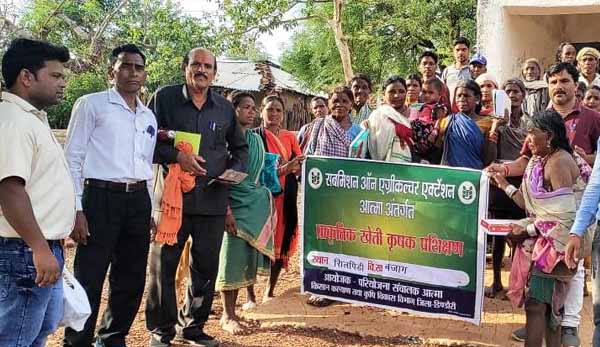 डिंडौरी ग्राम सिलपिड़ी ग्राम पंचायत चाड़ा में किसान कल्याण तथा कृषि विकास विभाग सह परियोजना संचालक आत्मा द्वारा खरीफ फसल एवं अन्ना की बुआई से पूर्व खेत की तैयारी से लेकर बीज उपचार, नीदा नियंत्रण को ले कर प्राकृतिक खेती आधारित प्रशिक्षण आयोजित किया गया। जिसमें एसएडीओ बीटीएम, कृषि प्रशिक्षण केंद्र डिंडौरी, राष्ट्रीय खाद्य सुरक्षा मिशन तकनीकी सहायक एवं प्राकृतिक खेती संबंधित एनजीओ से प्रदीप साहू उपस्थित रहे।