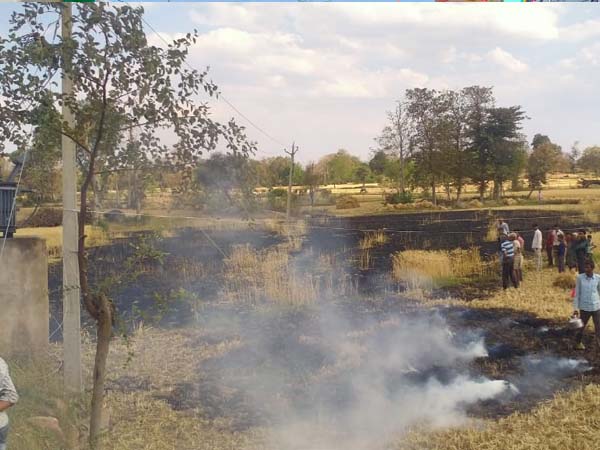 गेहूं की खड़ी फसल में शॉर्ट सर्किट के कारण आग लग गई है
