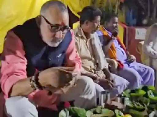 केंद्रीय मंत्री गिरिराज ने खाई चापड़ा और बोबो भजिया