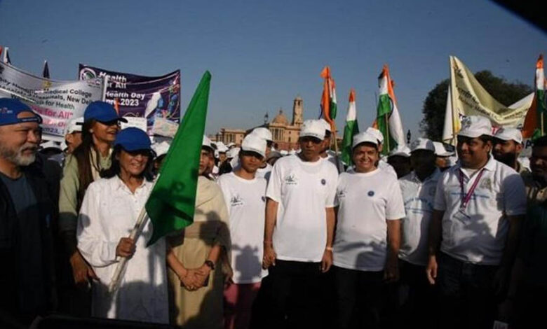 दिल्ली में विश्व स्वास्थ्य दिवस (World Health Day) पर वॉकथॉन आयोजित किया गया। केंद्रीय स्वास्थ्य मंत्री मनसुख मांडविया ने वॉकथॉन का नेतृत्व किया। इस वॉकथॉन में हजारों लोगों ने हिस्सा लिया। इस दौरान मनसुख मांडविया ने कहा कि प्रधानमंत्री नरेंद्र मोदी के नेतृत्व में स्वास्थ्य को विकास, स्वच्छता के साथ जोड़ा गया है।