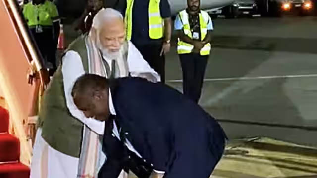 जापान में जी-7 शिखर सम्मेलन में शामिल होने के बाद जब प्रधानमंत्री नरेंद्र मोदी पपुआ न्यू गिनी के एयरपोर्ट पर पहुंचे तो वहां के प्रधानमंत्री जेम्स मरापे ने उनके पैर छूकर स्वागत किया। मोदी भारत के ऐसे पहले प्रधानमंत्री हैं जो कि पपुआ न्यू गिनी के दौरे पर पहुंचे। पपुआ न्यू गिनी ने भी पीएम मोदी के लिए अपनी पुरानी परंपरा को तोड़कर उनका भव्य स्वागत किया। दरअसल इससे पहले वहां सूर्यास्त के बाद किसी का स्वागत नहीं किया जाता था।