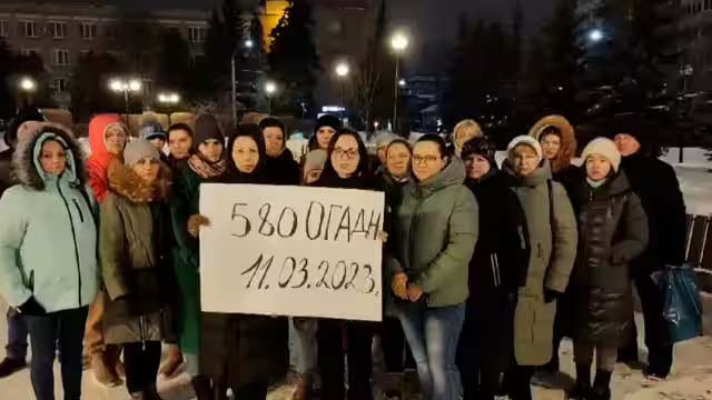 वीडियो में महिलाओं के हाथों में रूसी भाषा में लिखी हुई एक तख्ती पकड़े हुए दिखाया गया है, जिस पर लिखा है, "580 सेपरेट हॉवित्जर आर्टिलरी डिवीजन," दिनांक 11 मार्च, 2023"