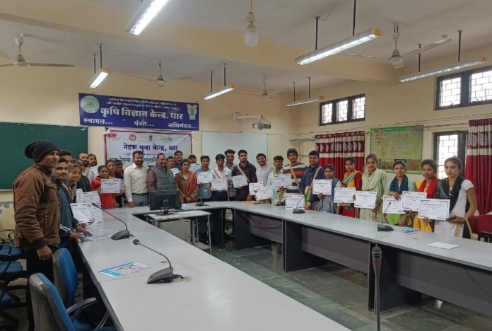 नेहरू युवा केन्द्र, धार के तत्वाधान में एवं जिला युवा अधिकारी के मार्गदर्शन में 23 से 25 जनवरी तक कृषि विज्ञान केन्द्र धार में युवाओं का तीन दिवसीय आवासीय प्रशिक्षण का आयोजन हुआ। इस प्रशिक्षण में विभिन्न युवा मंडल के सदस्यों ने भाग लिया। जिला युवा अधिकारी ने कार्यक्रम का मुख्य उद्देश्य बताते हुए कहा कि युवाओं में सामुदायिक विकास स्वयंसेवकों के मुल्यों, सामाजिक प्रतिबद्धता और देशभक्ति के बारे में प्रतिभागी युवाओं के बीच जागरुकता पैदा करना, मौलिक जीवन कौशल पारस्परिक कौशल, सहानुभूति और नेतृत्व कौशल पर प्रशिक्षण प्रदान करना है, ताकि वे स्वयं की जिम्मेदारी लेने में सशक्त हो और सामुदायिक विकास और सामाजिक विकास गतिविधियों में नेतृत्व और योगदान दे सकें। प्रतिभागियों से प्रशिक्षण को लेकर उनकी अपेक्षाए भी पूछी गई। तत्पश्चात स्वयं सेवा के मुल्यों, सेवा और नेतृत्व कौशल पर अपने बहुमुल्य विचार प्रतिभागियों के साथ साझा किये।